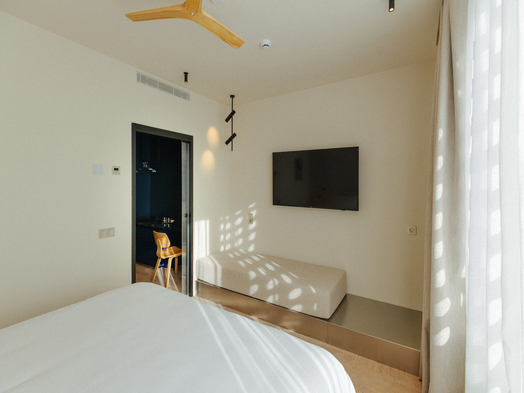 Habitaciones acogedoras con vistas a la Plaza del Chicharro y a la calle Valentín Sanz. Un espacio cómodo y luminoso, ideal para descansar tras un día explorando la ciudad. Todas incluyen minibar personalizable con productos locales, Wi-Fi gratuito y Smart TV con acceso a plataformas de streaming.